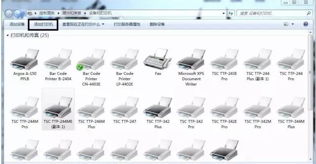 1)打開設(shè)備和打印機(jī)頁(yè)面,點(diǎn)擊“添加打印機(jī)”
