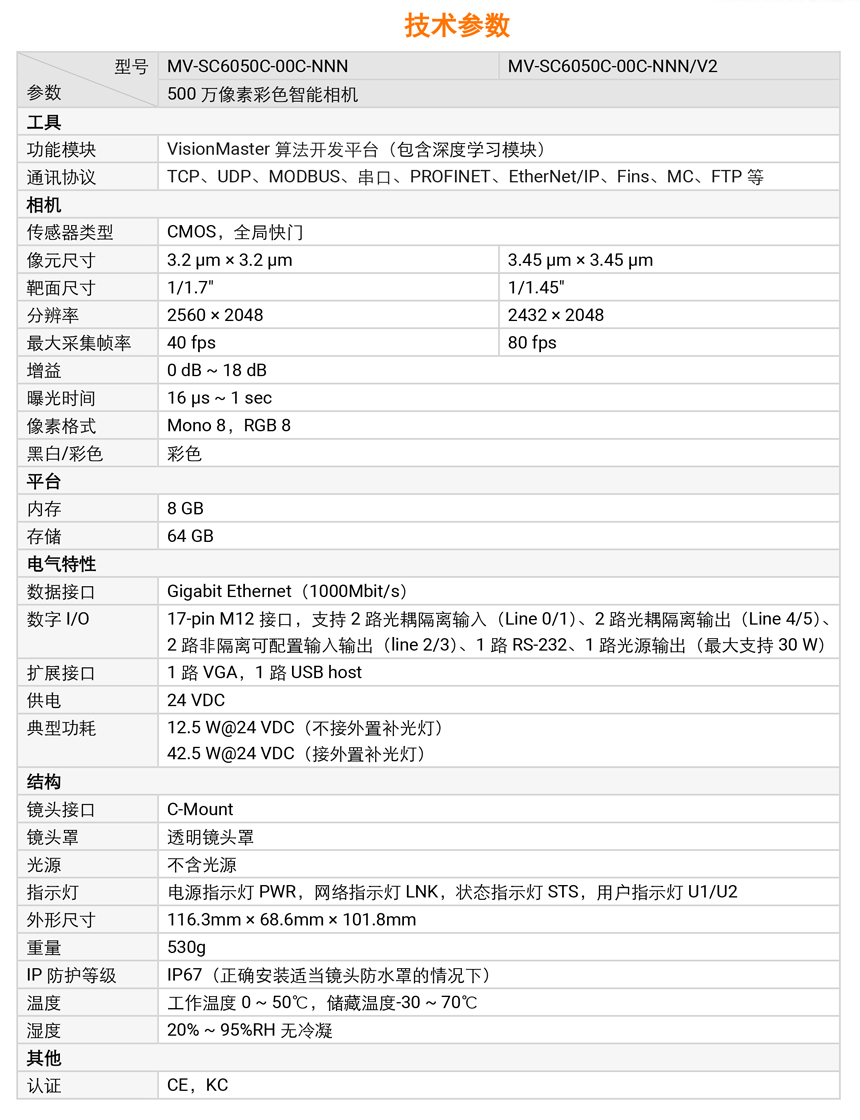 海康MV-SC6050C-00C-NNN 智能相機(jī)基于高性能嵌入式平臺開發(fā),相機(jī)內(nèi)嵌 AI 深度學(xué)習(xí)算法,支持 140+ 算法功能,擁有強(qiáng)大的運(yùn)算性能。同時支持豐富的接口擴(kuò)展,可直接驅(qū)動外部光源,接入顯示器、鍵盤和鼠標(biāo),全面提高視覺應(yīng)用的靈活性和復(fù)雜場景適配性,突破智能相機(jī)的應(yīng)用限制。